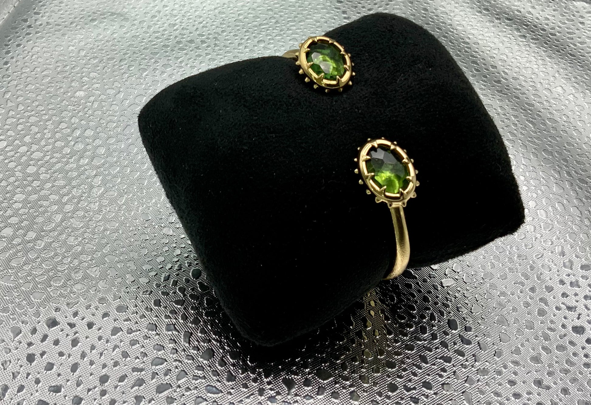 14K gold plated metalwork that is hand-carved with crystals.